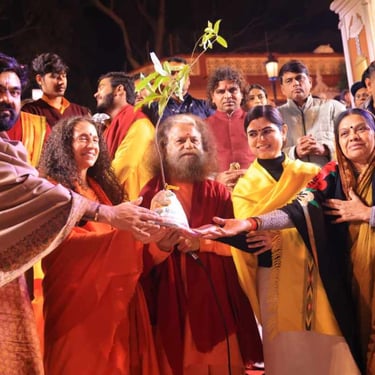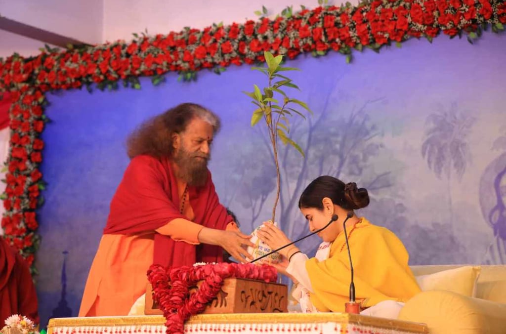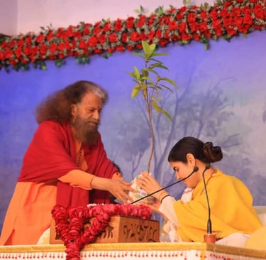 At the conclusion, Pujya Swami Chidanand Saraswati Ji presented a Rudraksha sapling to Devi Chitralekha Ji and the organizers, marking the beginning of spreading the message of green storytelling.